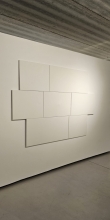 Na środku jednego z płócien rozbłyska, co kilka sekund, światło punktowe. Drażniący błysk światła trwa krótko - gdy zgaśnie, na siatkówce oka powstaje powidok. Pomimo wizualnej ciszy, za jaką można uznać neutralną biel płócien, powidok działa na zmysły widza. Efekt zgiełku trwa w ciszy. W ciszy można odczuwać zgiełk.