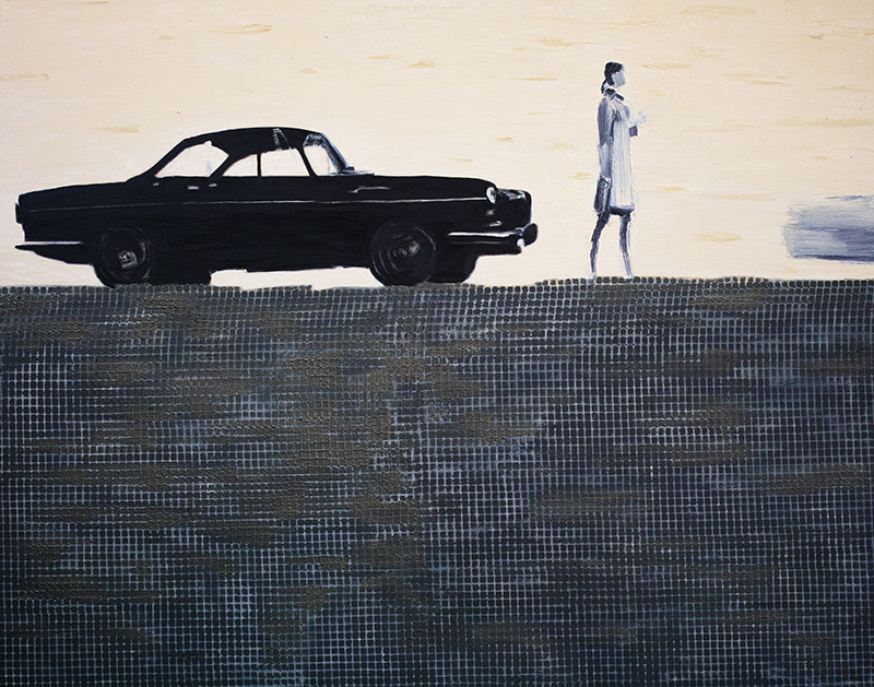 Namalowałam kilka obrazów, w których głównym motywem jest samochód, konkretny samochód – granatowy Renault Floride. Mój tata wszedł w jego posiadanie w okresie głębokiego PRL-u, kiedy spełnienie marzeń o dowolnym czterokołowym pojeździe było mało realne, a co dopiero o takim modelu. Przy czym ja doceniam teraz tylko sylwetę, natomiast tata także to, co znajdowało się pod maską. Samochód czasami służył też do wycieczek za miasto, a moja mama – ówczesna dziewczyna właściciela, czasami dostępowała zaszczytu przejażdżki, oczywiście jako pasażer, mimo że posiadała prawo jazdy. Na zachowanych zdjęciach widać, że dumny posiadacz, w takim samym stopniu portretuje swój pojazd, jak i swoją kobietę. Z racji swych zalet malarskich moją uwagę zwrócił także drugi plan – wspaniały, minimalistyczny krajobraz, który zobaczyłam także jako szarą pustkę – metaforyczną reprezentację tamtych czasów.