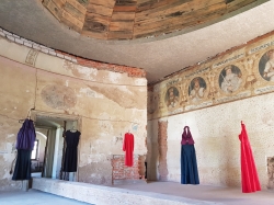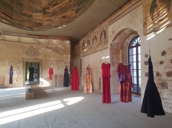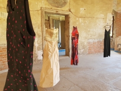 An installation of ball dresses used by the artist over the years, mainly at weddings. The dresses did not see real palace balls until this installation. The story is related to a piece of material that was given to the mother of artist by her mother, the artist's grandmother during communism, with the idea that she would sew a dress from this material when she was going to the ball. The material is still waiting.