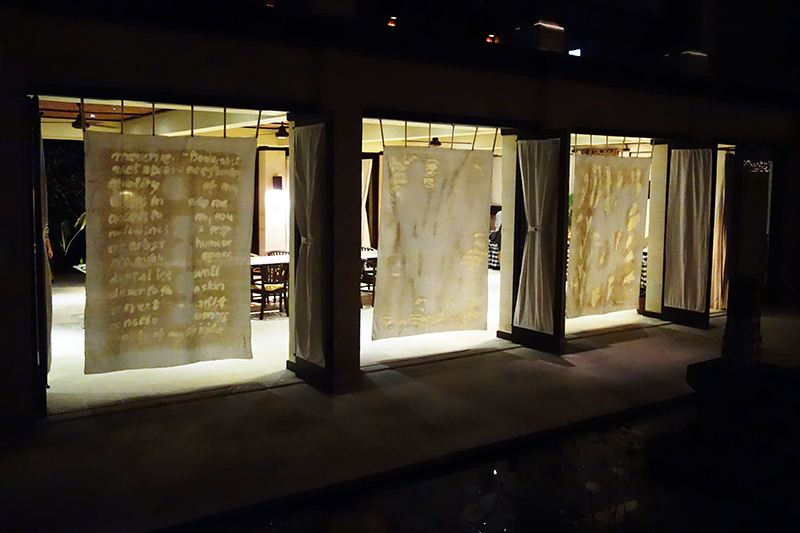 The creative process associated with the implementation of Journey I-IV was a multi-stage, inspired by the meditative and reflective nature of the residence, the local atmosphere and traditional artistic techniques (batik and natural, organic pigments), landscape and interest in human energy expressed through his body.