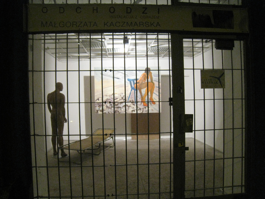 Wyobrażenia par, kobiety i mężczyzny występują w sztuce wielu cywilizacji. W przeszłości najczęściej służyły dokumentowaniu statusu społecznego portretowanych lub przekazywaniu moralizatorskich treści, przybranych w biblijny i mitologiczny kostium. Współcześnie to przede wszystkim opowieść o osobistych relacjach międzyludzkich, i nie inaczej jest w przypadku instalacji i obrazu Małgorzaty Kaczmarskiej. Intymna sytuacja damsko-męska, pełna napięcia i nieukrywanego smutku. Mężczyzna-manekin i kobieta, której sylwetka określona mocną, intensywną plamą czerwieni, właśnie podejmuje decyzję. Kobieta, która odchodzi, odejdzie a może już odeszła... ?