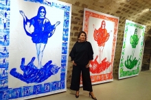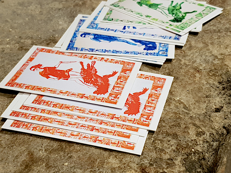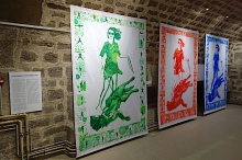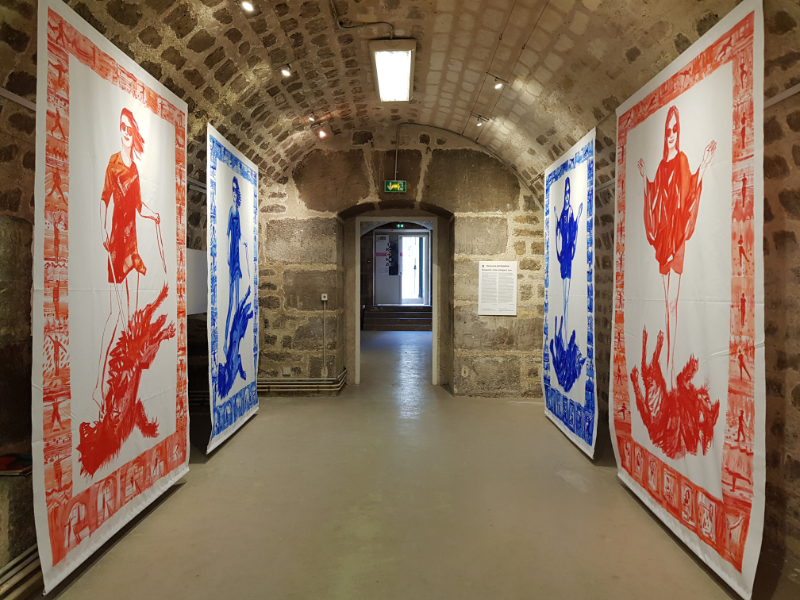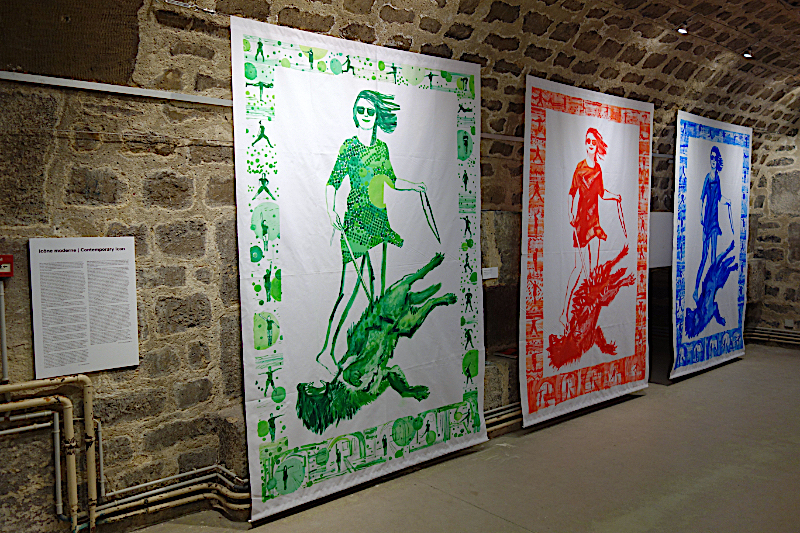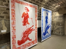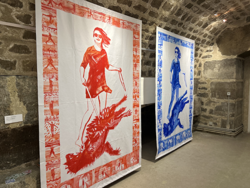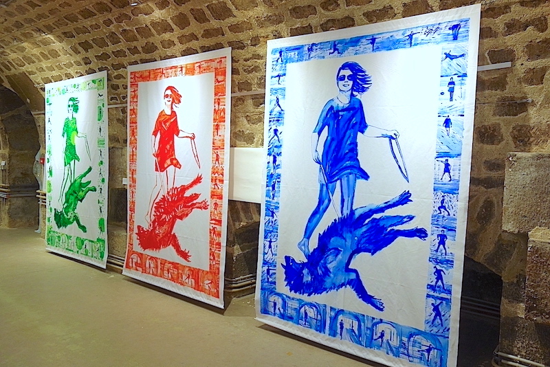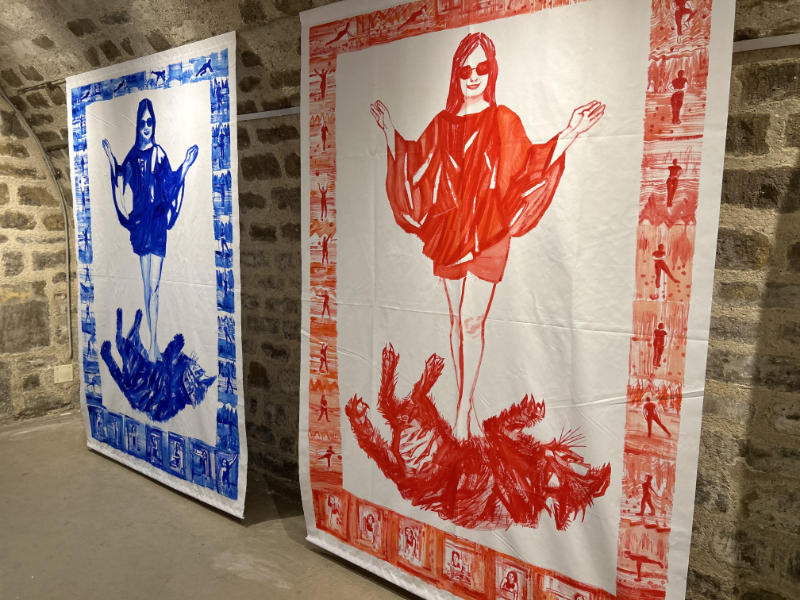Przedstawiam Małgorzatę z popularnymi domowymi pupilami: kotem lub psem, które w poszczególnych wyobrażeniach nabierają mniej lub bardziej drapieżnego wyglądu. Ekspresja form i sposób malowania są powiązane z interpretacją barw występujących w wyobrażeniach świętej. Otóż przedstawienia świętej Małgorzaty powinny, według tradycji, uwzględniać trzy kolory, które mają wtedy znaczenie symboliczne. Pierwszy to czerwień – symbolizująca męczeństwo, ale też piękno, dobroć, młodość i zaangażowaną wiarę. Drugi to błękit – męczeńska śmierć została nagrodzona wstąpieniem do nieba, życiem wiecznym, a więc to symbol życia pozaziemskiego. Wreszcie zieleń – odnosi się do innych wiernych, szczególnie tych poświęcających się dla wiary, a także do Ducha Świętego. Inspirując się znaczeniem tych trzech kolorów w wizerunku Świętej, zdecydowałam się na monochromatyczne przedstawienia zrealizowane w czerwieni, błękicie i zieleni.