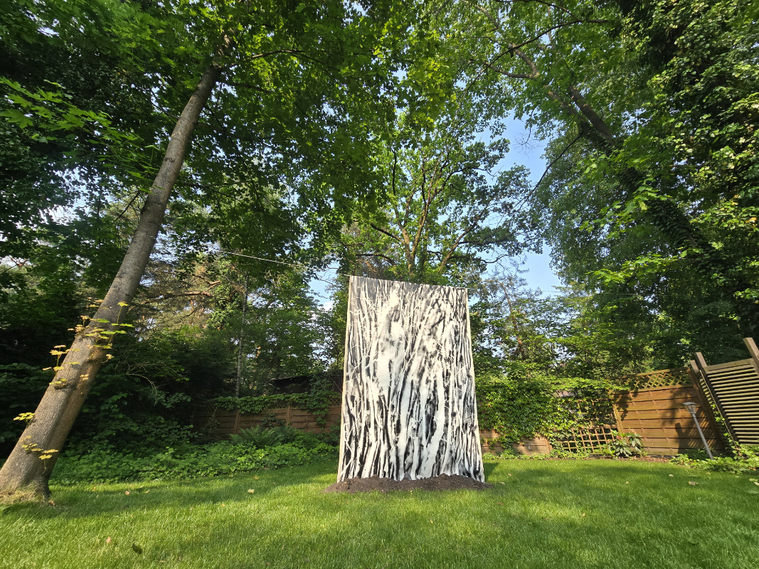 Instalacja malarska z elementami land artu: FUNDAMENT, instalacja malarska (dyptyk), 280 x 200 x 40 cm, akryl na płótnie, ziemia, 2025. Zrealizowałam ją w ramach wydarzenia artystyczno-naukowego "Sustainability in Art".