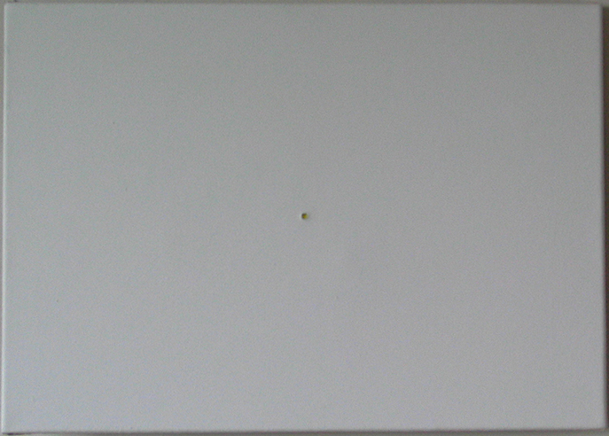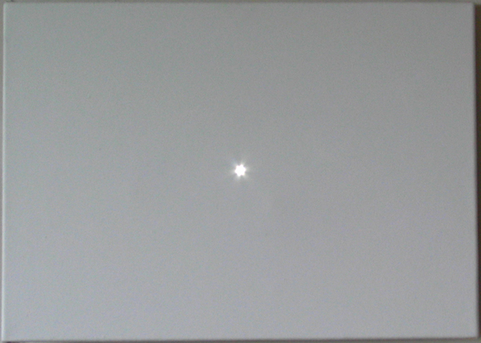Na środku jednego z płócien rozbłyska, co kilka sekund, światło punktowe. Drażniący błysk światła trwa krótko - gdy zgaśnie, na siatkówce oka powstaje powidok. Pomimo wizualnej ciszy, za jaką można uznać neutralną biel płócien, powidok działa na zmysły widza. Efekt zgiełku trwa w ciszy. W ciszy można odczuwać zgiełk.