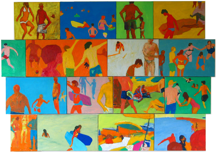 W płótnach poświęconych plaży – zobaczonej z dystansu – położyłam nacisk na poszukiwanie wyrazistych kontrastów kolorystycznych.